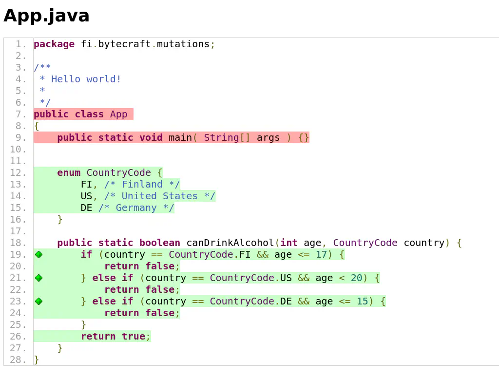 at fi.bytecraft.mutations.AppTest.TestAlcoholLegalAges(AppTest.java:19)