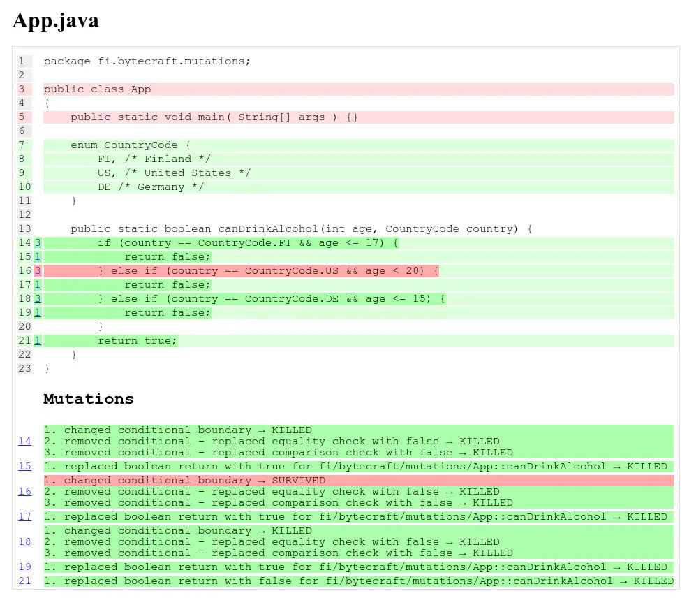 [ERROR] TestAlcoholLegalAges(fi.bytecraft.mutations.AppTest) Time elapsed: 0.004 s <<< FAILURE!